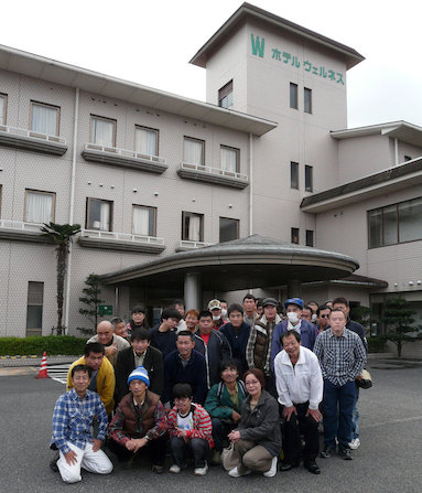 11月7日午前10時、金比羅タクシー41人乗り大型バスに乗って太陽と緑の会リサイクル作業所を出発。高松道、瀬戸大橋、岡山道、米子道と走り、午後1時8分に蒜山高原SAに到着。経費節減のため昼食は手作りのおにぎり。午後2時20分、宿泊先のホテルウェルネスほうき路(鳥取県米子市)に到着。