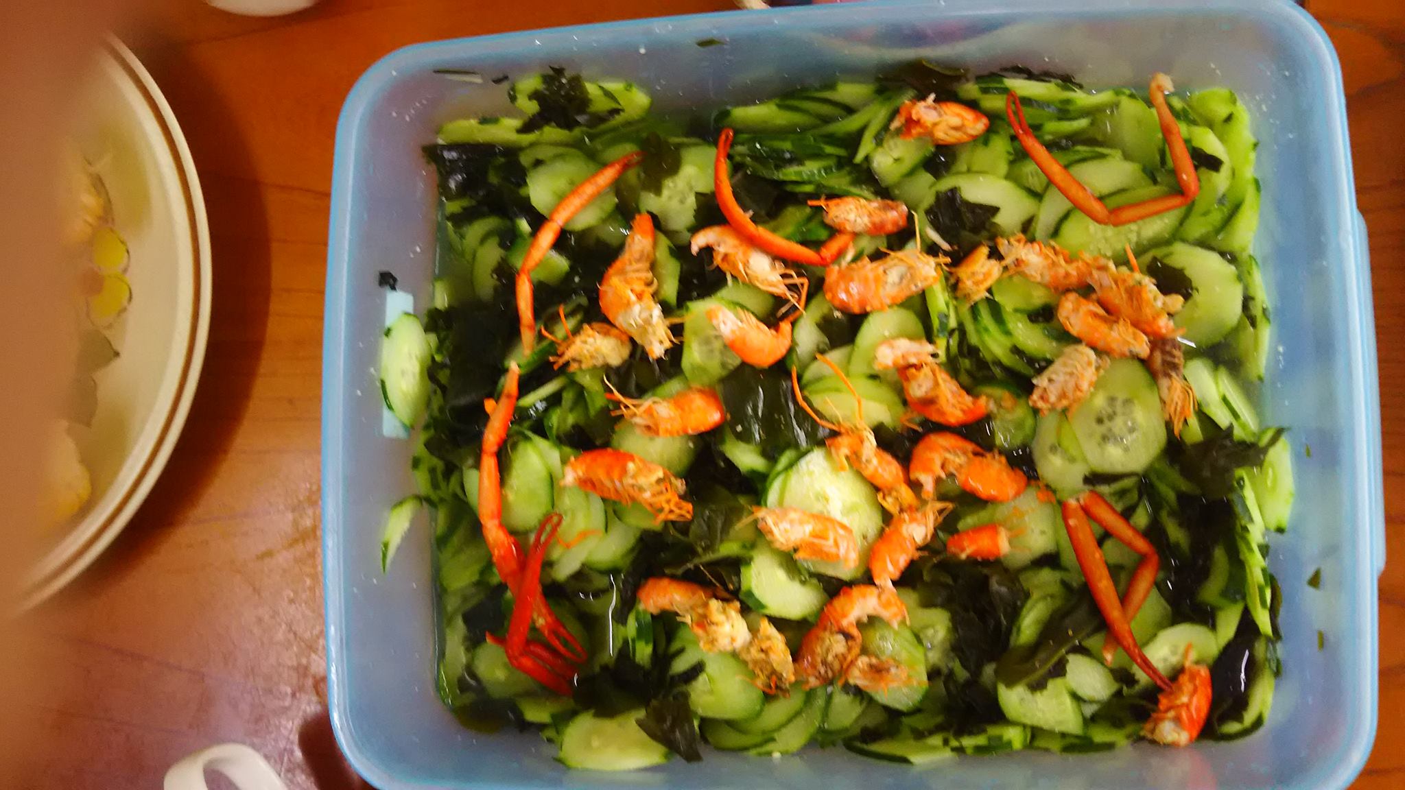 月の宮作業所今日の昼食 インゲン豆・茄子🍆など夏野菜カレーライス、なすの味噌汁、🌽トウモロコシ、きゅうりとワカメ・川エビの酢の物、無農薬のミニトマトを頂きました。夏のオンパレードでした。