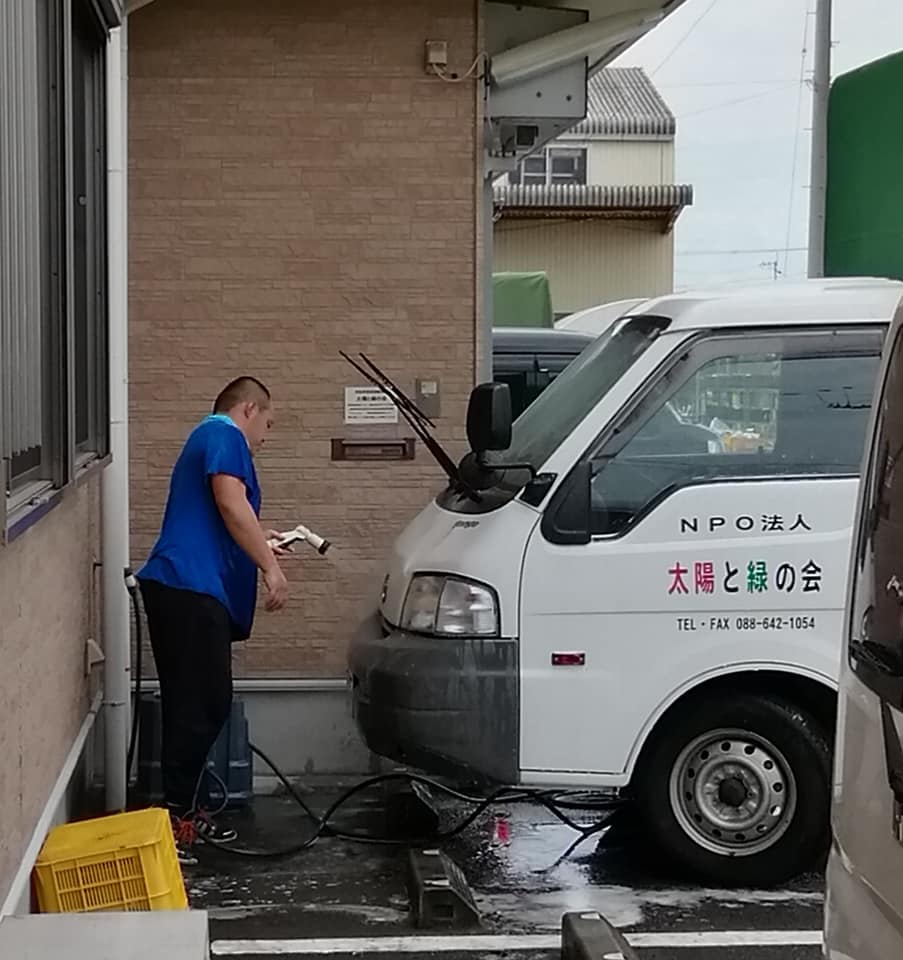太陽と緑の会の車両の洗車はKさんがすべて一人でやってくれています。