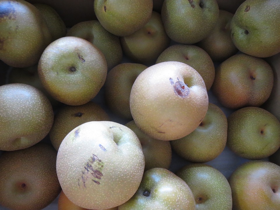 こんな立派な梨を段ボール2箱も頂き、みんなにおすそ分け出来て有難き事この上なしの心境。ただ作っておられる農家の方々の落胆を思えば、喜んでばかりはおられません。