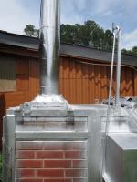 最初の煙突は意外に早く穴が開き、ステンレスの煙突に交換。今回はそのステンレス煙突の溶接部分から穴が開きました。バーナーで850度まで燃焼温度を上げるため早く劣化するのでしょうか。