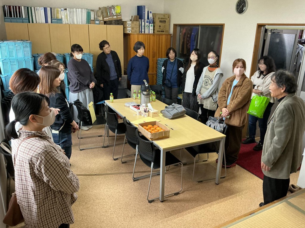 昨年に続き「社会課題に臨むー座学とフィールドワーク」をテーマに、15名の方々が参加されました。2階の面談室にて「人も物も活かされる活動を41年続けて」と題したP.P.を使って、前半、後半とお話させていただきました。バックナンバーの機関紙とパンフレットをお配りし、リサイクル作業所所長・事務局長・理事の小山が現場案内をした後、クイックルワイパー、化学雑巾、ほうきなどを使って、品物を見てきただきながら掃除をしていただきました。